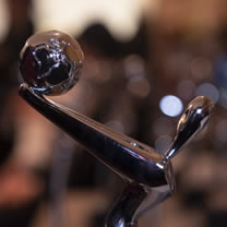 Centrado en uno de los elementos más icónicos de la gala, la mujer Latinoamérica que mira al mundo, este trofeo protagoniza la imagen desde un punto de vista más cercano, mostrándola como puede observarla alguien que la tenga en sus manos